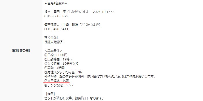 ※店舗によっては押し忘れ当欠のメールが届いた時点で、今日の募集ストップ連絡があるので必ず確認しましょう。