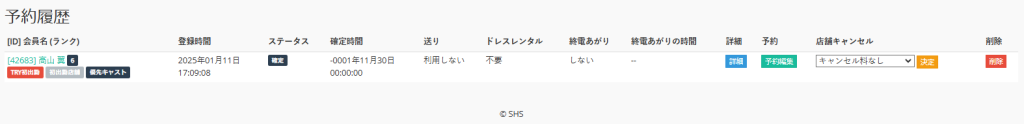 ※原則として、確定済み会員がキャンセルとなる場合、店舗都合キャンセルとして扱い、キャンセル料が発生します。